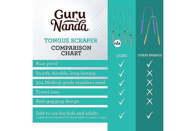 HELPS PREVENT BAD BREATH: Scraping your tongue twice a day is the best way to prevent bad breath. The GuruNanda Tongue Scraper removes layers of gunk promoting a healthier appearance to your mouth.