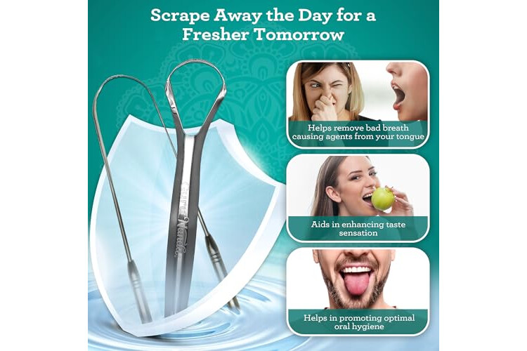 HELPS PREVENT BAD BREATH: Experience fresher breath & enhanced oral hygiene with GuruNanda Tongue Scraper. Regular use helps remove debris, reduces bad breath, & helps improve taste by thoroughly cleaning the tongue's surface.