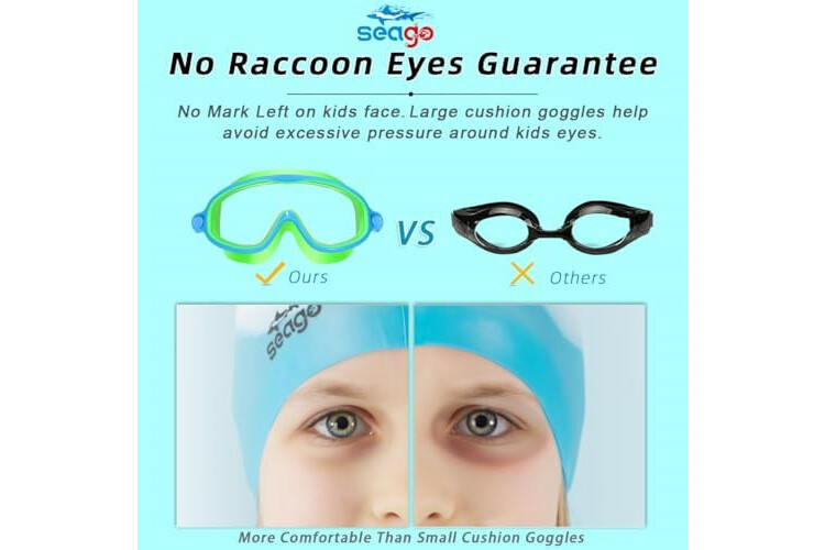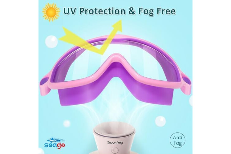 Seago Swim Goggles 2 Pack Anti-Fog Anti-UV Wide View Swimming Goggles for Kids 3-14