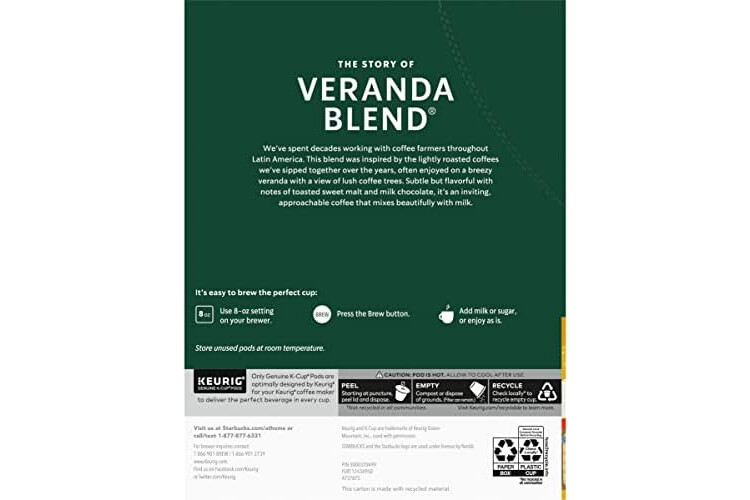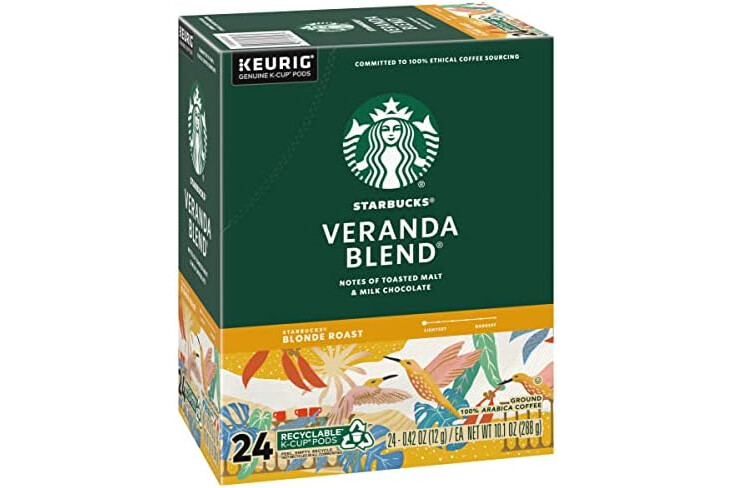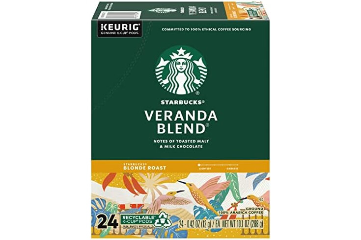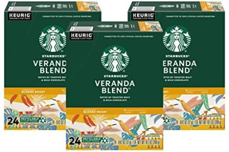 Starbucks Coffee K-Cup Pods, Veranda Blend, Blonde Roast Coffee, Notes of Toasted Malt & Milk Chocolate, Keurig Genuine K-Cup Pods, 24 CT K-Cups/Box (Pack of 3 Boxes)