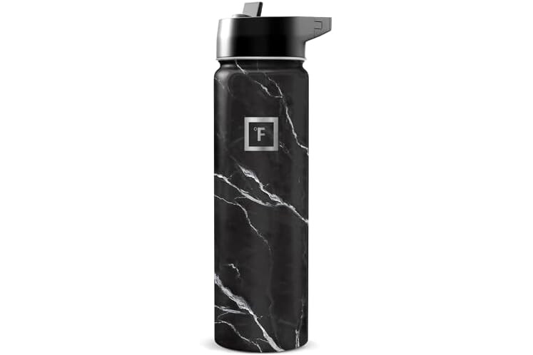 IRON °FLASK Camping & Hiking Hydration Flask with Straw, Wide Mouth Insulated Stainless Steel Sports Water Bottle - Black Marquina 24 oz - Straw (1 Lid)