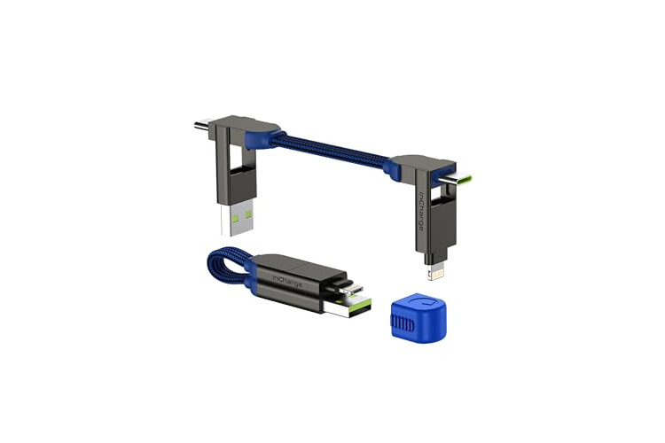 Rolling Square, inCharge X, Multi Charging Cable, Portable Keychain 6-in-1 with 100W Ultra-Fast Charging Power, Sapphire Blue, Multi Charger