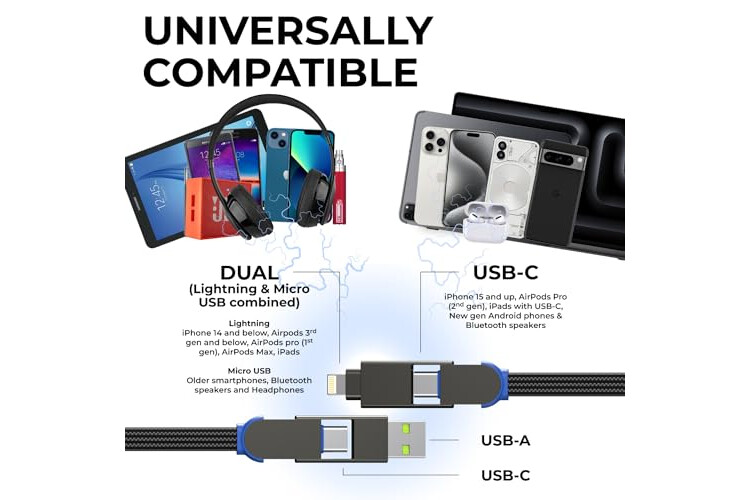 FAST-CHARGING - USB-C multi-cable allows for ultra fast-charging, up to 100W, and Apple’s fast-charging up to 18W - even charge laptops and tablets - so you’ll never be without power again