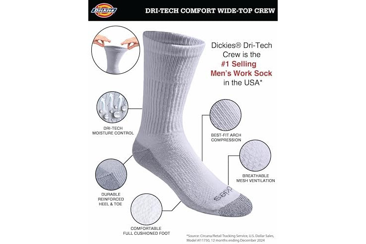 Dickies Unisex Adult Men’s and Women’s Easy-stretch Comfort Top Dri-tech Favorite Crew Socks