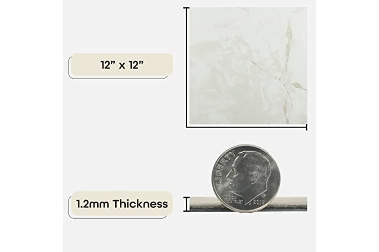 Dimensions: Each tile measures 12 inches x 12 inches and 1.2mm thick. There are 20 tiles per box, which will cover 20 square feet.