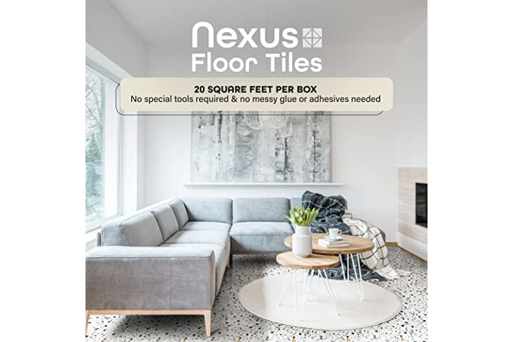 Nexus Vinyl Tiles: Refresh your home for a low cost and no hassle with the Nexus Vinyl Floor Tiles. Our tiles can be used in any room in your home including the kitchen, dining room, bedrooms, bathrooms, foyers, and basements. No messy glue or adhesives needed. Includes 20 vinyl tiles