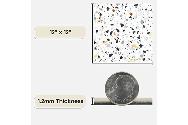Dimensions: Each tile measures 12 x 12 and 0.05 inches thick. There are 20 tiles per box, which will cover 20 square feet