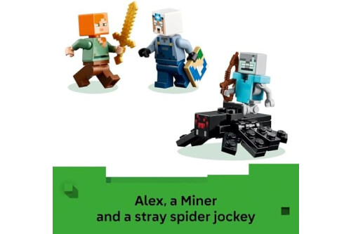 LEGO Minecraft The Pickaxe Mine Kids Toy - Building Set for Boys and Girls - Minecraft Toy for Gaming Fans 8+ - Includes Alex, Miner, and Stray Spider Jockey Minifigure - Birthday Gift Idea - 21277