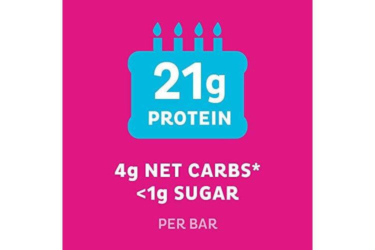 • 21g Protein, 4g Net Carbs, 1g Sugar, 14g Fiber per bar