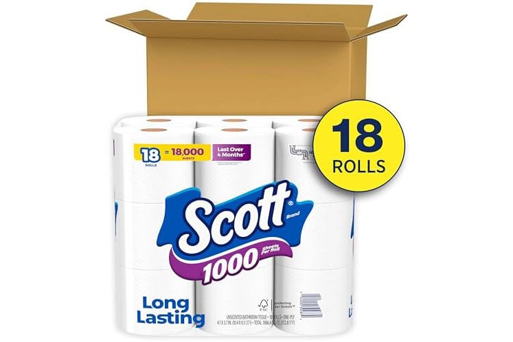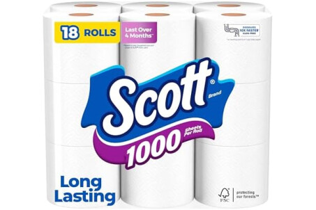 • 18 rolls of Scott 1000 Toilet Paper, 1-ply, 1000 sheets per roll​