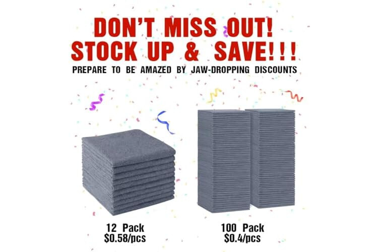 Value-Packed 100-Pack: One purchase for enduring use. This 100-pack of microfiber towels meets all your everyday cleaning needs, providing exceptional value and long-term savings.