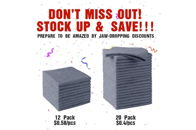 HOMEXCEL Grey Microfiber Cleaning Cloths, 20 Pack Cleaning Rags - Lint Free & Scratch-Free Microfiber Towels for Cars, House & Kitchen, Absorbent Cleaning Towels, 11.5 x 11.5 Inch