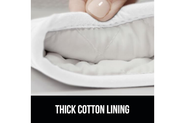 THICK COTTON LINING THROUGHOUT: stay comfortable while you cook; soft cotton lining offers additional protection and comfort, and feel simply amazing; plus, silicone is flexible and conforms easily to your unique grip
