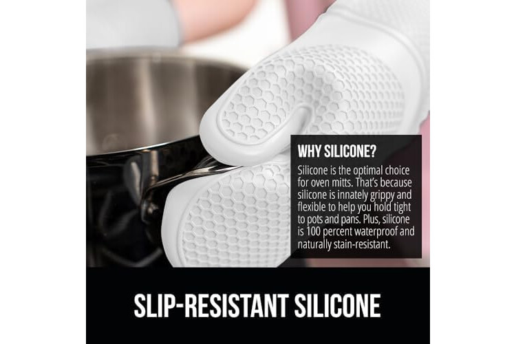 GET A BETTER GRIP: the best oven mitt pair; constructed of durable silicone, mitts are naturally slip resistant, helping you to get the best grip while you cook; unique textured honeycomb pattern helps you hold tight to pans, pots and baking sheets without hindering your natural grip