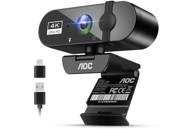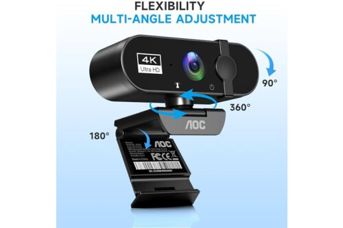 AOC 4k Webcam for PC with Microphone, Computer Camera with Noise Cancellation, Privacy Cover, 99° FOV, Plug & Play USB Webcam for Streaming, Conferencing, Zoom, Skype, Facetime, Laptop, PC, Skype