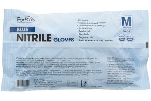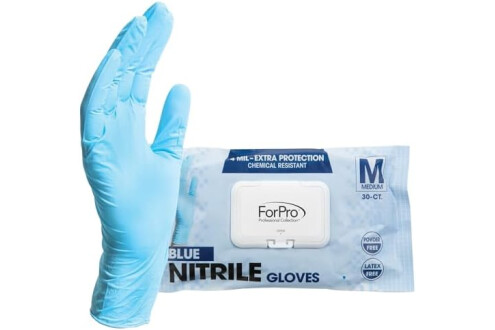 ForPro Disposable Nitrile Gloves, Chemical Resistant, Powder-Free, Latex-Free, Non-Sterile, Food Safe, 4 Mil
