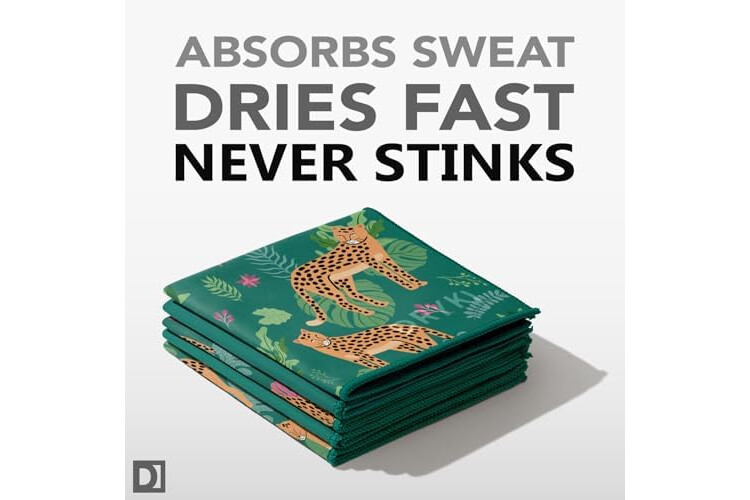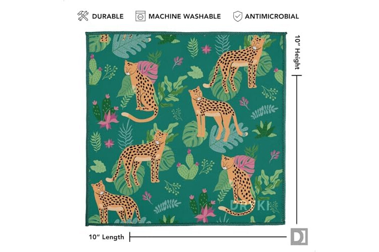 DRYKI Pocket-Sized Sweat Towels - The Original Sweat Absorbing Handkerchiefs - Quick-Dry Microfiber Sweat Rags for Face, Hands, & Body - Men & Women - Gym, Sports, and Work (Jungle Cat: 5 Pack)
