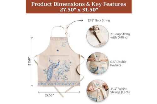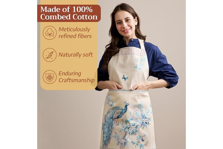 Maison d' Hermine 100% Cotton Apron for women with Pocket Kitchen Chef Apron for Men Cooking Gardening Server Waitress