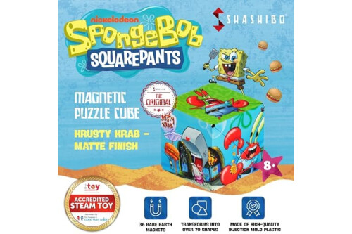 Designed For Comfort - Shashibo means award-winning quality. The innovative design of the puzzle cube gently fits the hand for hours of mind-challenging fun! It is built of premium injection mold plastic, 36 rare earth magnets, and a tear-proof, matte surface. Covered with tons of SpongeBob SquarePants artistic patterns & mesmerizing artwork, for a special underwater story in over 70 shapes.