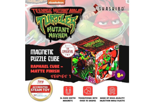 SHASHIBO Teenage Mutant Ninja Turtles Shape Shifting Box - STEM Magnetic Fidget Cube That Transforms Into Over 100 Shapes, Download Fun in Motion Toys Mobile App (Raphael)