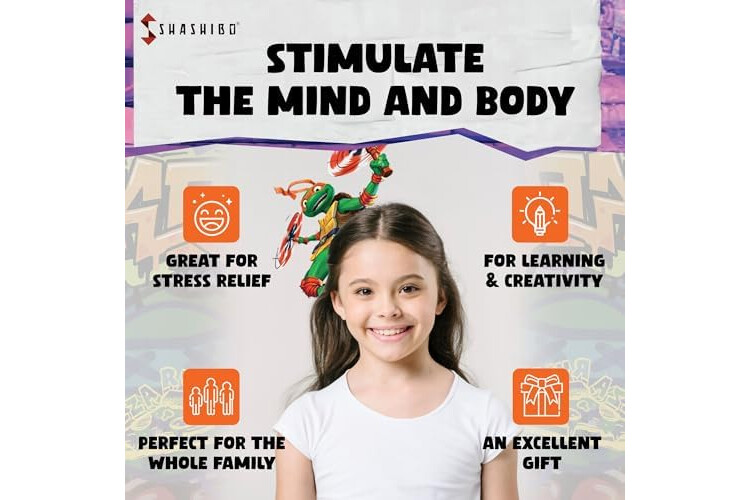 Designed For Comfort - Shashibo means award-winning quality. The innovative design of the puzzle cube gently fits the hand for hours of mind-challenging fun! It is built of premium injection mold plastic, 36 rare earth magnets, and a tear-proof, matte surface. Covered with tons of Ninja Turtles' artistic patterns & mesmerizing artwork, for a special TMNT story in over 70 shapes.