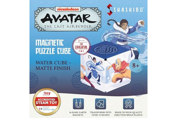 Designed For Comfort - Shashibo means award-winning quality. The innovative design of the puzzle cube gently fits the hand for hours of mind-challenging fun! It is built of premium injection mold plastic, 36 rare earth magnets, and a tear-proof, matte surface. Covered with tons of Avatar The Last Airbender artistic patterns & mesmerizing artwork, for the magical action story of Iroh, Aang, Zuko, and Momo in over 70 shapes.