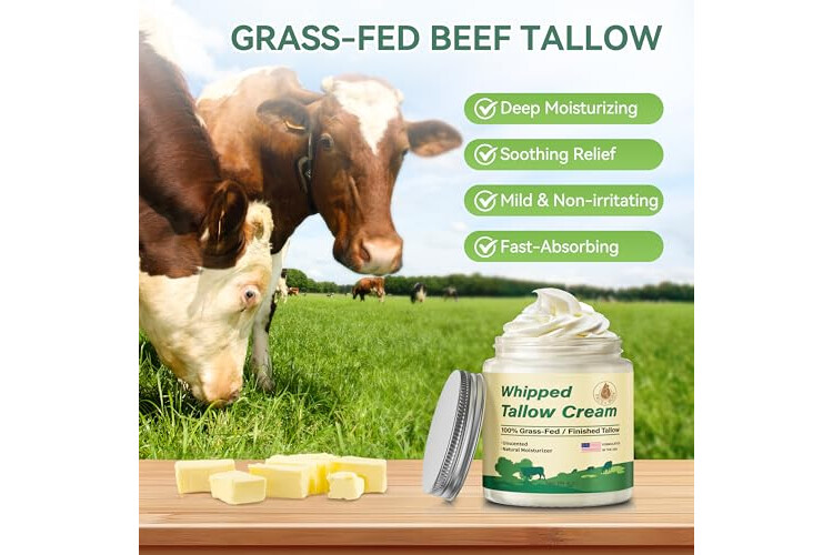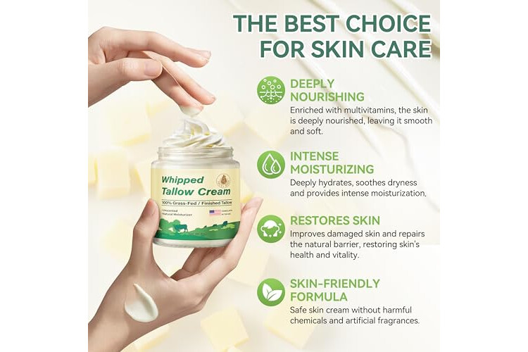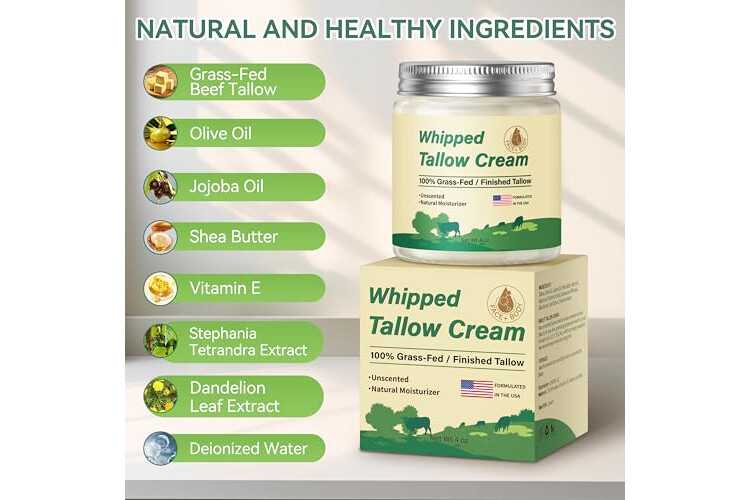 ALL-NATURAL INGREDIENTS: Beef tallow for skin contains olive oil, jojoba oil, shea butter, and other organic and natural ingredients, which bring strong moisturization, soothe dryness, repair damaged skin, and restore health and vitality to your skin