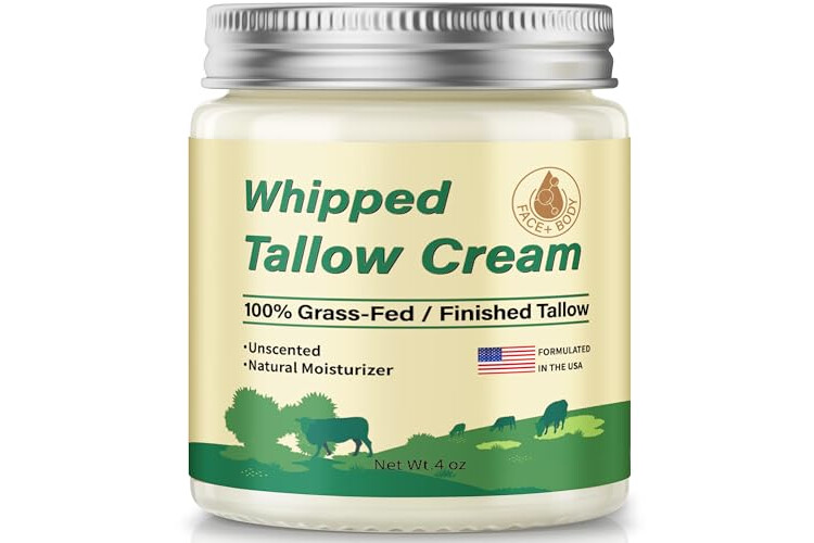 ZIIDII Beef Tallow for Skin, Organic Grass Fed Whipped Beef Tallow Balm Moisturizer Deeply Nourishing for Face & Body, Natural Unscented Tallow Face Moisturizer Cream for Dry Skin, 4oz