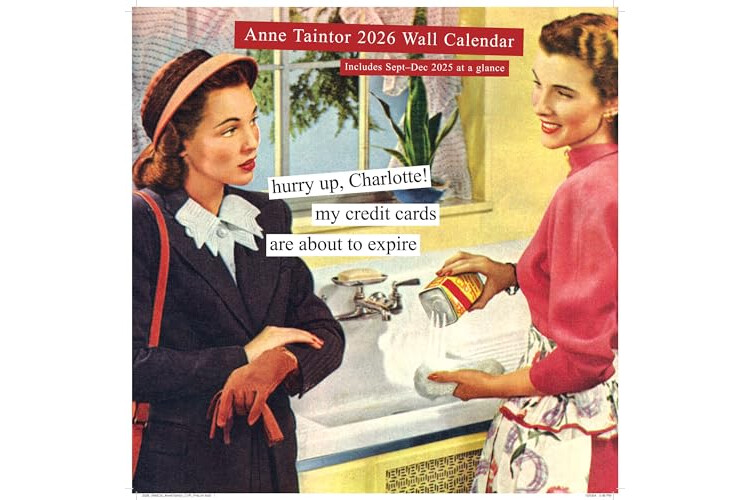 Anne Taintor's vintage ladies serve up wicked wit, dark humor, and just the right dose of bad behavior. This hilarious 2026 wall calendar provides irreverent quips for each month of the year.