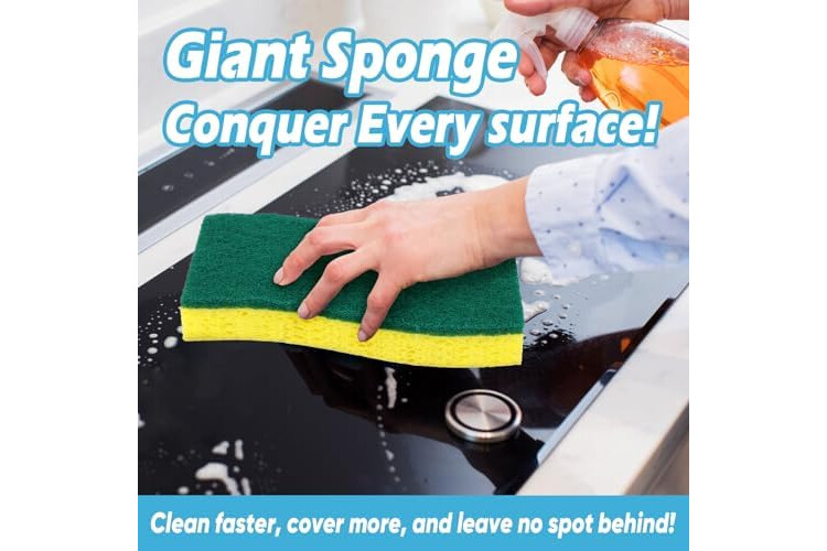 Meet the GIANT of Clean: The cleaning BEAST; Industrial-strength scour pads DESTROY stuck-on food; Ultra-dense core LAUGHS at wear; Obliterates grime in seconds - bigger, tougher, and unstoppable!