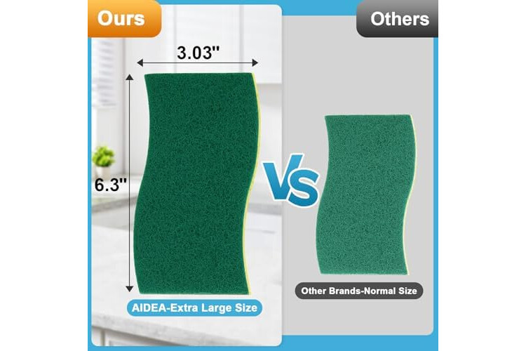 Extra-Large Size for Superior Cleaning Efficiency: AIDEA XL Sponges are Huge, outshining standard sponges; perfect for big pots, trays, and sinks; cover more area in less time, making cleaning faster and easier than ever!
