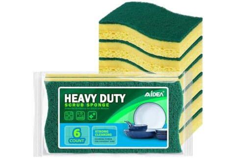 AIDEA Heavy-Duty Scrub Sponges, 6Count, Sponges for Non-Coated Cookware, Kitchen Sponge for Dishes, Scrubbing Power for Tough Messes, Cleaning Sponge for Kitchen, Bathroom, Household