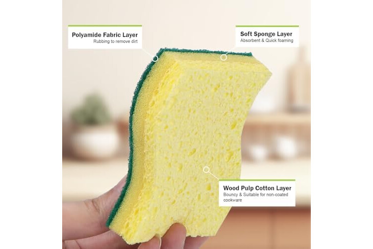 Dishwasher-Safe Sanitization: Made with sustainable materials, AIDEA heavy-duty kitchen sponges rinse clean and dry quickly; prevent unpleasant odors; for extended use, sanitize in your dishwasher