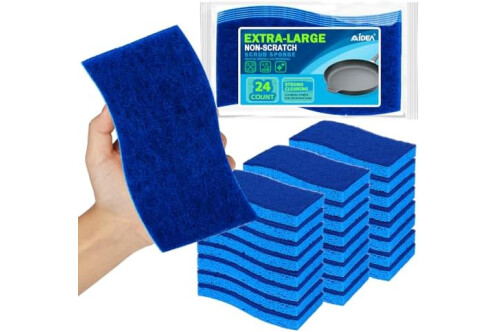AIDEA XL Scrub Sponges Non-Scratch 24Count, Extra Large Sponges Kitchen, Sponge for Dishes, Cleans Fast Without Scratching Safe for Non-Stick Cookware, Cleaning Power for Kitchen, House