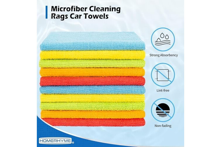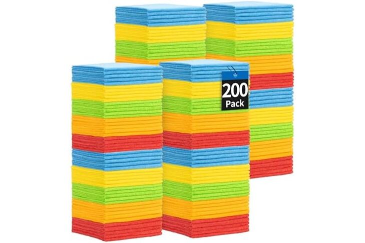 HOMERHYME Microfiber Cleaning Cloth, 200 Pack Cleaning Rags Microfiber Towel Bulk Absorbent Lint-Free Wash Cloths, All-Purpose Towels for Cars, Shop, Automotive, Garage, Home & Kitchen