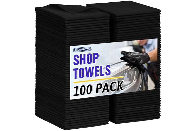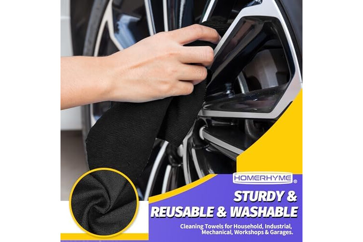 HOMERHYME Microfiber Cleaning Cloth, 100 Pack Black Cleaning Rags Microfiber Towel Bulk Absorbent Lint-Free Wash Cloths, All-Purpose Towels for Cars, Shop, Automotive, Garage, Home & Kitchen