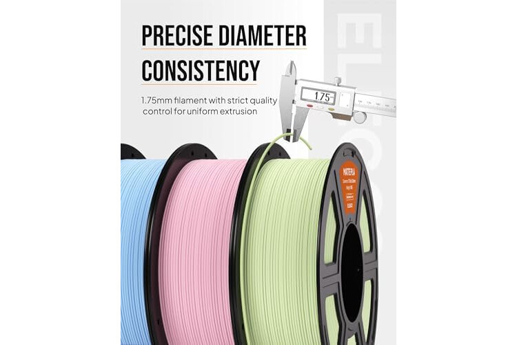 HIGH PRECISION & RELIABLE CONSISTENCY: ELEGOO employs high-precision manufacturing and strict quality control to maintain a consistent 1.75 mm filament diameter, delivering reliable performance and exceptional print accuracy every time