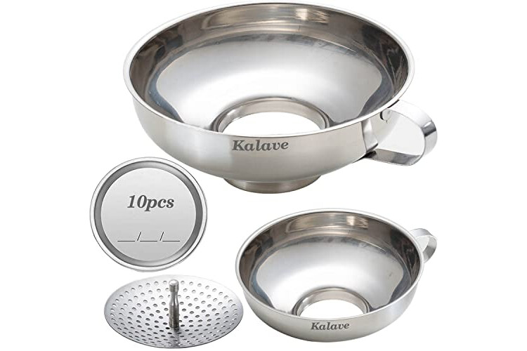 Perfect canning funnel kit: Our canning funnel supplies kit included 1 pcs Large canning funnel, 1 pcs small canning funnel, 1 pcs umbrella strainer, 10 pcs Regular mouth canning lids. Great for filling various wide mouth and regular mouth jars like mason jars to transfer jam, fruit jars, liq...