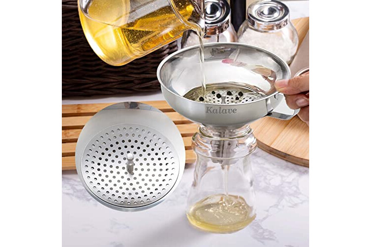 Kalave Canning Funnel, Food Grade Stainless Steel Canning Funnels with Strainer, Wide Mouth Funnels for Kitchen Use, Canning Supplies Kit for Wide and Regular Mason Jars - 3 Pack (Small and Large)