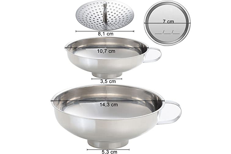 Food grade funnel set: These canning funnels made from food grade high-quality stainless steel, 100% safe, non-toxic, sturdy and durable.