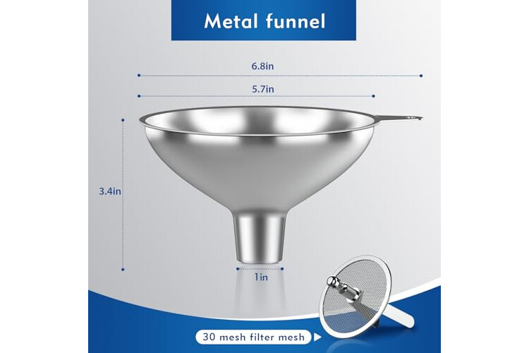 Large Capacity & Versatile Use – Featuring a 6.8-inch wide mouth, this funnel fits large jars, containers, brewing equipment, and more—perfect for kitchen use, food prep, and DIY projects.