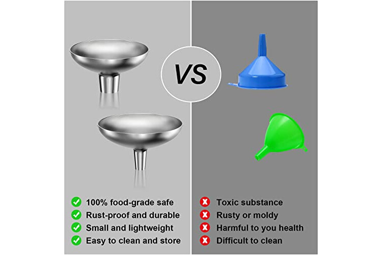 High Quality 304 Stainless Steel: Made of high quality 304 stainless steel material molded in one piece, safe and durable, suitable for edible oil, resin, liquid, condiment, powder transfer and many other scenarios, it is a good and indispensable helper in your life.