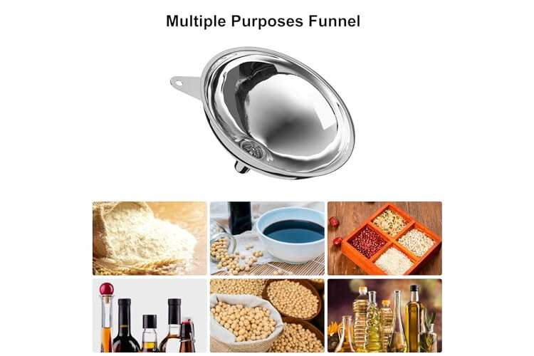 CONVENIENT STORAGE AND USE: the large funnel with handle design can be easily hung on the wall and carried. The kitchen funnel is also easy to hold and use, preventing liquid spills and keeping it balanced.