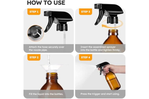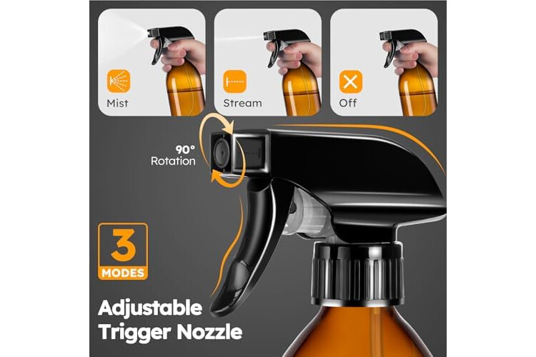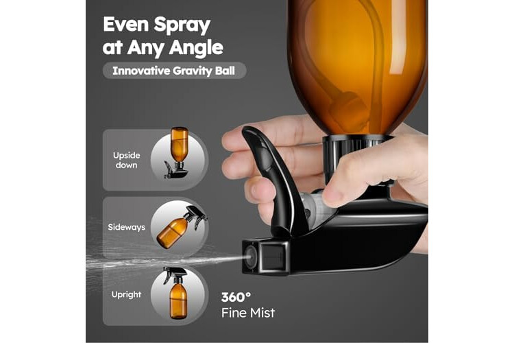 【360° All-Angle Spray】8 OZ Glass Sprays Bottles Designed with an advanced nozzle and gravity-ball system, our spray bottles let you spray upside down, sideways, or upright without interruption. Perfect for hard-to-reach spots, high shelves, or low-angle applications.