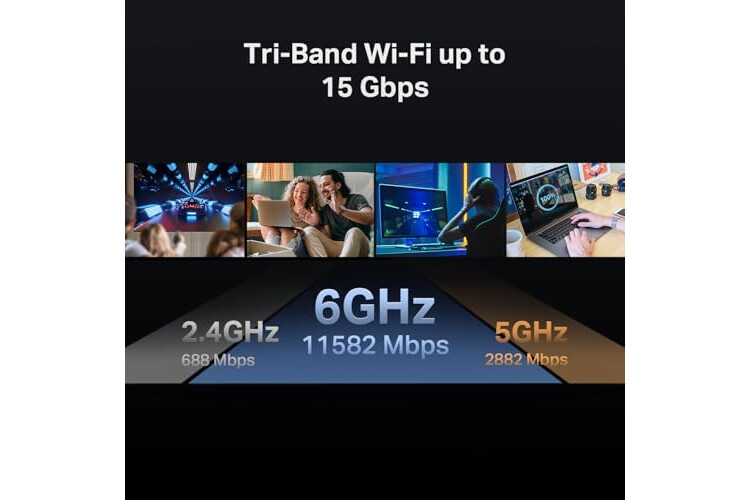๐๐ฅ๐๐ณ๐ข๐ง๐ -๐ ๐๐ฌ๐ญ ๐๐๐๐๐๐๐ ๐๐ซ๐ข-๐๐๐ง๐ ๐๐ฉ๐๐๐๐ฌ: With speeds of up to 11528 Mbps on the 6GHz band, 2882 Mbps on the 5GHz band, and 688 Mbps on the 2.4GHz band, the Archer BE700 delivers fluent 4K/8K streaming, immersive AR/VR gaming and blazing-fast downloads.