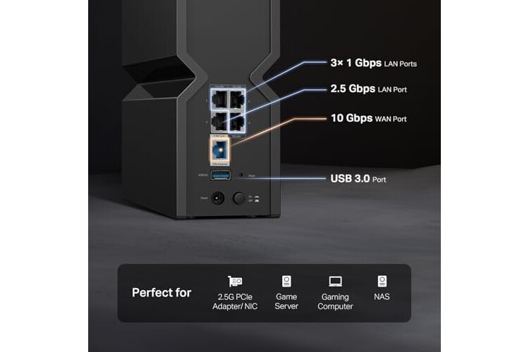 ๐๐ ๐๐๐ฉ๐ฌ ๐๐จ๐ซ๐ญ ๐๐จ๐ซ ๐๐ฎ๐ฅ๐ญ๐ข-๐๐ข๐ ๐๐๐ข๐ญ ๐๐จ๐ง๐ง๐๐๐ญ๐ข๐ฏ๐ข๐ญ๐ฒ: Features one 10 Gbps WAN port, one 2.5 Gbps LAN port, and three 1 Gbps LAN ports for super-fast connections and data transfers, maximizing device performance.ยง Integrate with a multi-gig modem for gigplus internet.