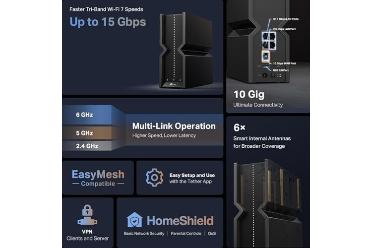 ๐๐๐ฑ๐ญ-๐๐๐ง ๐๐ข-๐ ๐ข ๐: Designed with the latest Wi-Fi 7 technology, featuring Multi-Link Operation, Multi-RUs, 4K-QAM, and up to 320 MHz channels. Optimize performance on latest WiFi 7 laptops and devices, like the iPhone 16 Pro, and Samsung Galaxy S24 Ultra.