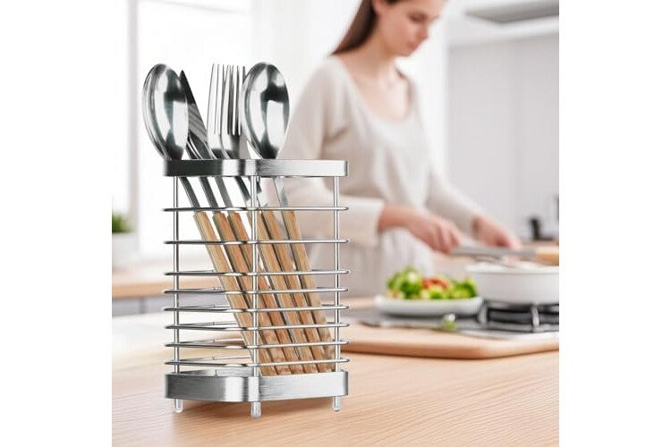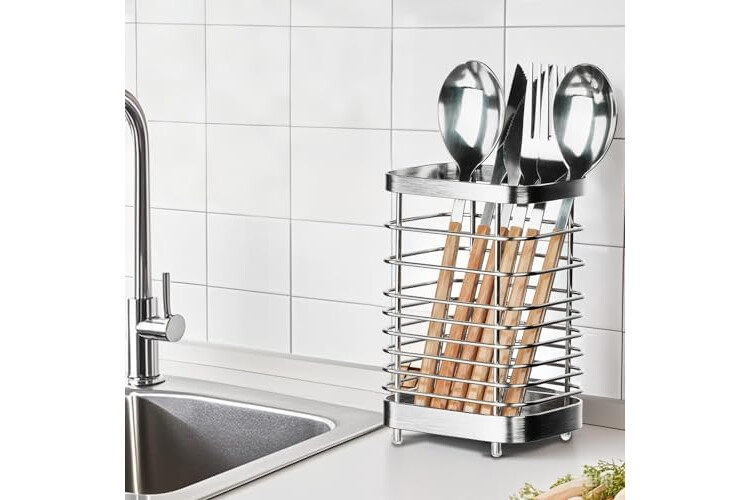 Keep Utensil Clean and Tidy: IWNTWY stainless steel cutlery rack has drainage holes, and the hollow ventilation design can keep the utensil dry.