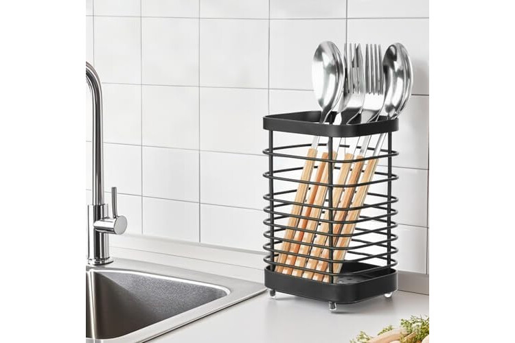 Keep Utensil Clean and Tidy: IWNTWY stainless steel cutlery rack has drainage holes, and the hollow ventilation design can keep the utensil dry.