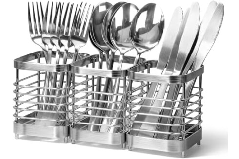 IWNTWY Utensil Holder, Stainless Steel Utensil Drying Rack for Kitchen Counter, Silverware Cutlery Flatware Holder Forks, Knives, Spoons, Chopsticks Organizer (Silver)